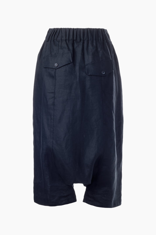 Asymmetric Drop Crotch Linen Pants with Pleats and Decorative Back Flaps – Cropped Unisex Trousers by Jana Coshe