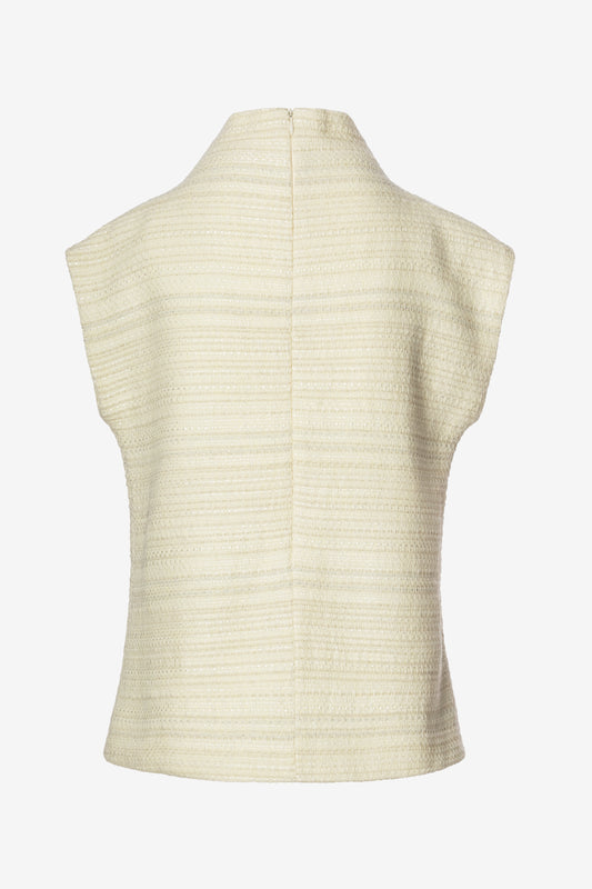 Asymmetric Linen Top with High Collar and Open Back – Sleeveless Sculptural Design with Bow by Jana Coshe