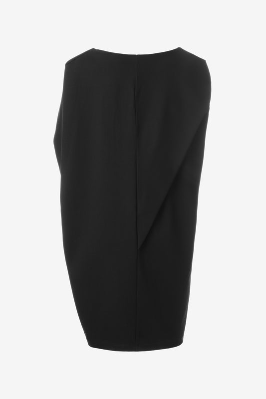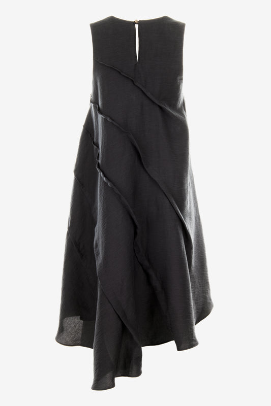 Asymmetric Black Sleeveless Dress – Avant-Garde Sculptural Ponte di Roma Dress by Jana Coshe
