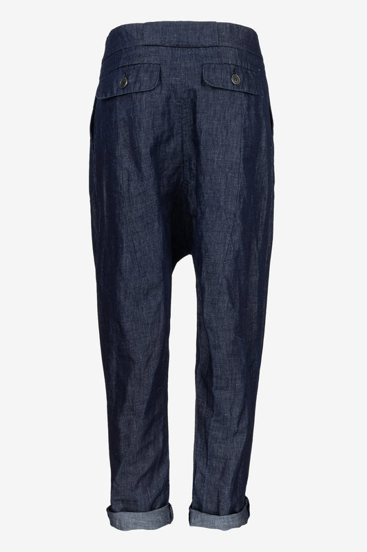 Linen Drop-Crotch Pants with Pleats and Back Flap Pockets – Handmade by Jana Coshe