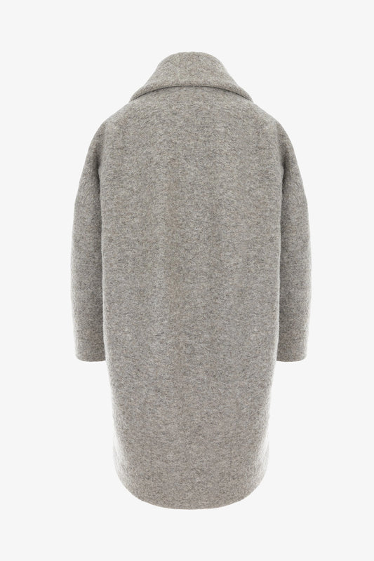Black Short Neoprene Coat with Asymmetric Silhouette and Button Closure