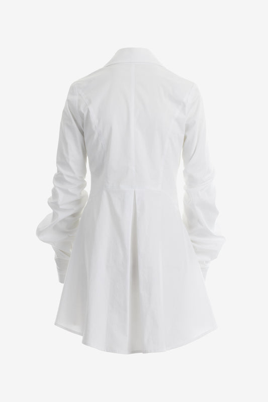 Long White Shirt with Draped Sleeves and Tailored Collar