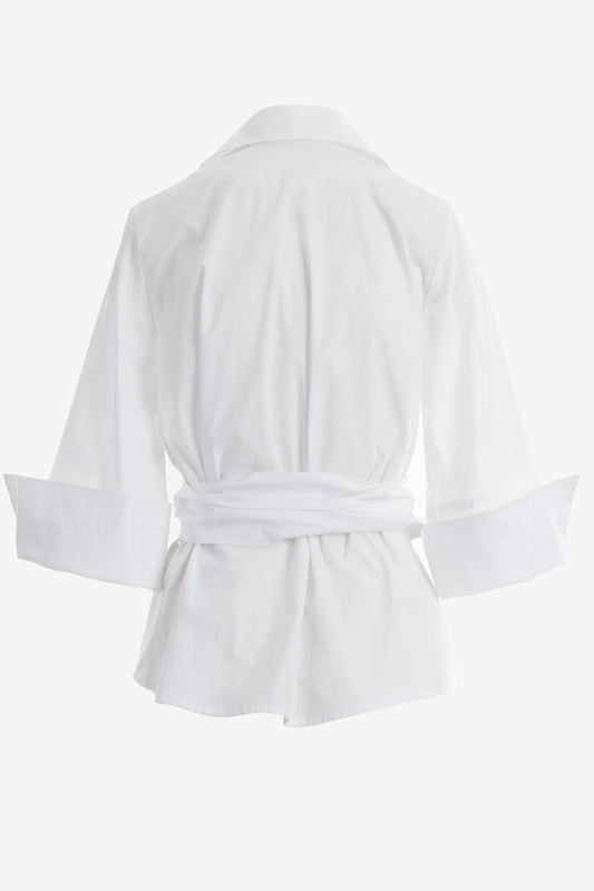 White Kimono-Style Shirt with Extra-Wide Cuffs and Long Belt