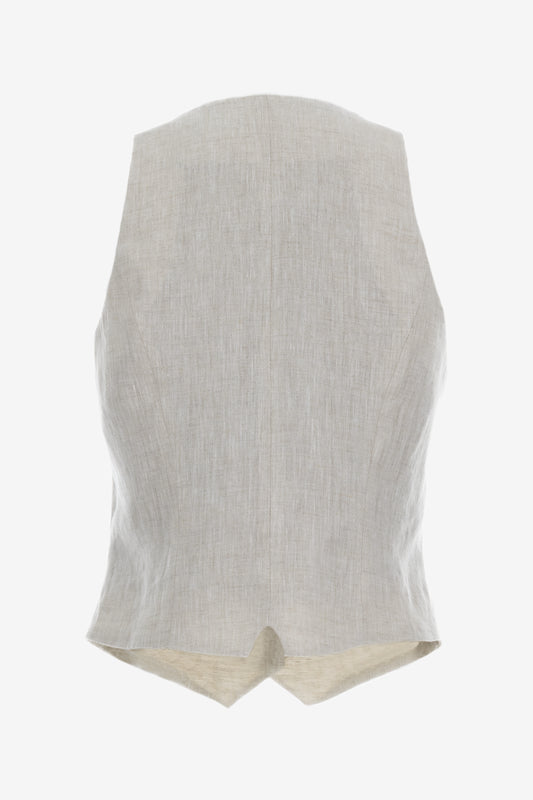 Fitted Linen Waistcoat with V-Neckline and Decorative Pockets – Handmade by Jana Coshe