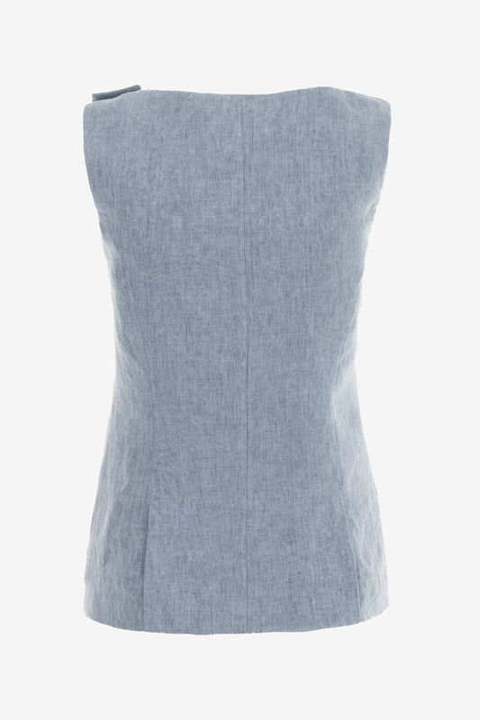 Asymmetric Linen Wrap Vest with Shoulder Closure – Fully Lined