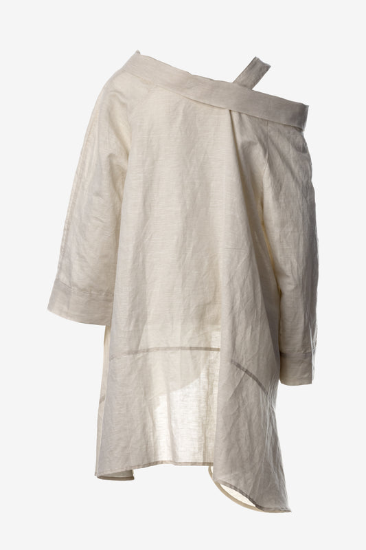 Asymmetric Linen Shirt with Strap Detail and Collar – Warm Sand