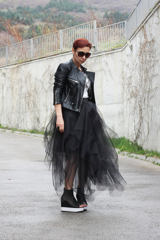 Asymmetric Tulle Skirt with Layers and Elastic Waist – Fully Lined