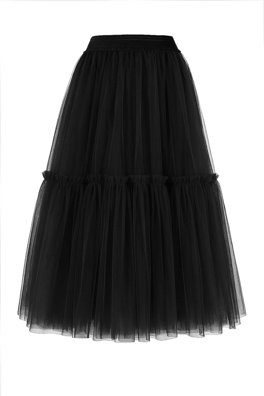 Asymmetric Tulle Skirt with Layers and Elastic Waist – Fully Lined