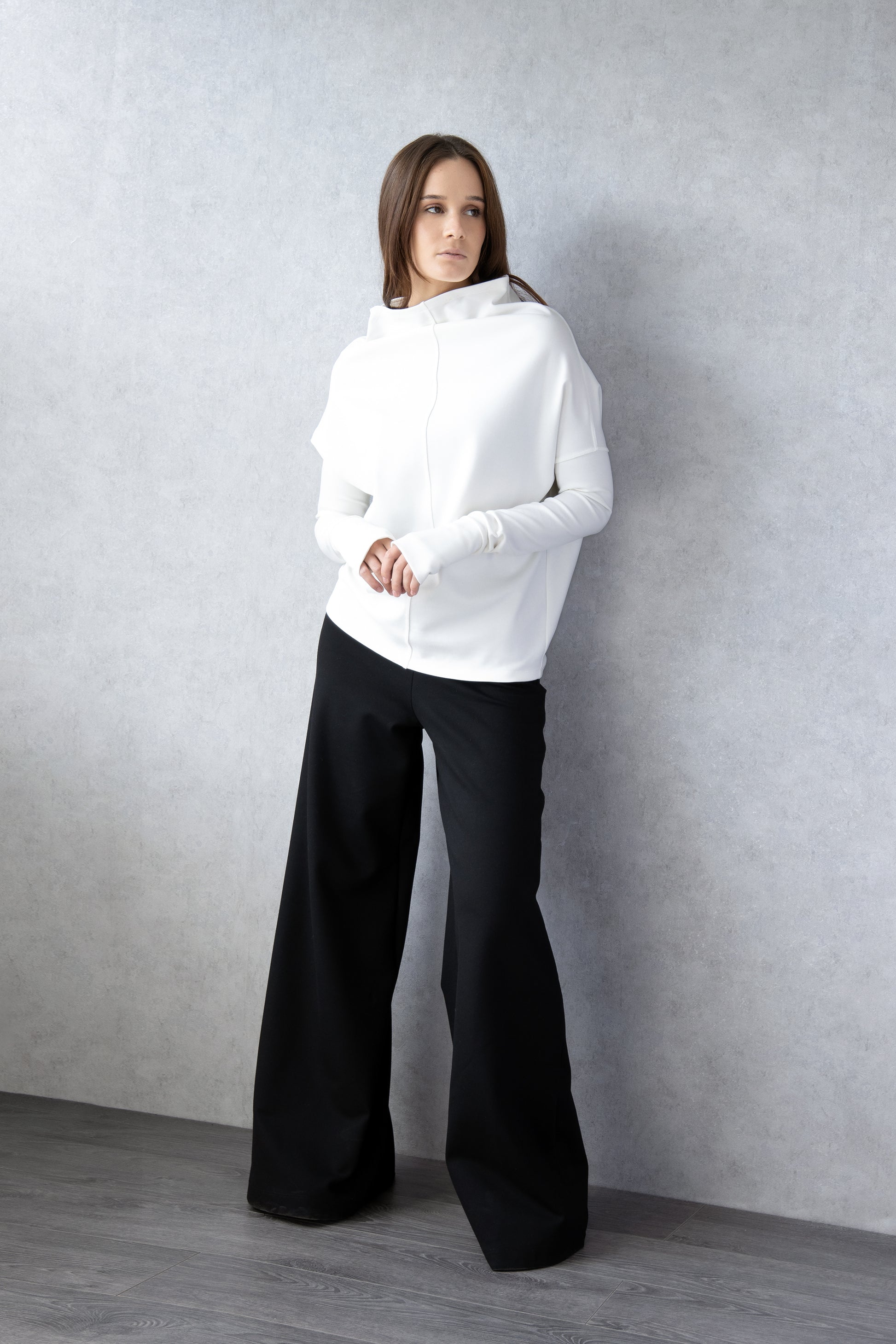 Flared Ponte di Roma Pants – Hidden Zipper, Soft Stretch Fabric, Elegant Fit